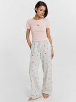 Сорочка женская выполнена из кулирки, 100% хлопок. Модель на тонких бретелях, низ оформлен запашным воланом с контрастной окантовкой и изящным бантиком, переднюю полочку украшает декоративная печать.