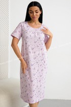 Сорочка из кулирки. Рукава отсутствуют, кружевная вставка, лямки, дизайн в виде узора из цветов. Длина до середины бедра. Может быть парой детской сорочке Ручеек (продается отдельно). Размеры от 42 до 52. Есть возможность розничного приобретения товара.