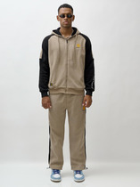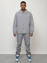 Мужской спортивный костюм из эластичного хлопкового трикотажного полотна. Куртка прямая с воротником, застегивается на молнию. Рукава втачные. Воротник, манжеты и пояс куртки выполнены из эластичного трикотажа. Брюки прямого силуэта. Прорезные карманы куртки и брюк застегиваются на молнии. Пояс брюк эластичный, по линии талии дополнительно регулируется шнуром.