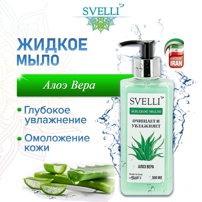 Жидкое мыло для рук с ароматом Алоэ Вера SVELLI обеспечивает деликатный уход за кожей. Используется для ежедневной гигиены рук. Легко удаляет грязь, масла, жиры, белки. Устраняет резкие запахи.