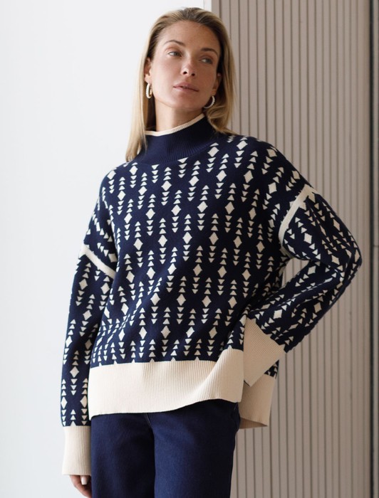 Свитер с боковыми разрезами жаккардовой вязки с кашемиром