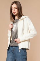 Высококачественный женский свитшот. Безупречные швы и идеальное исполнение всех деталей отделки. Выполнен из хлопковой ткани «футер» наивысшего качества – это очень плотный, но мягкий и эластичный материал, который не выглядит при этом громоздким. При всех своих преимуществах чистый хлопок не обладает нужной эластичностью и устойчивостью к деформациям. Поэтому лучший вариант – это полотна, где к хлопку добавляется 15 % синтетики. Такой материал хорошо отводит влагу от тела и не впитывает неприятные запахи. Он устойчив к многократному вытяжению, отлично держит форму, практически не мнется, имеет высокую износостойкость и продолжительное сохранение состояния «как новый», очень приятен к телу и не сковывает движения. Свитшот имеет идеальную посадку по фигуре, свободное облегание, за счет чего отлично скрывает несовершенства.