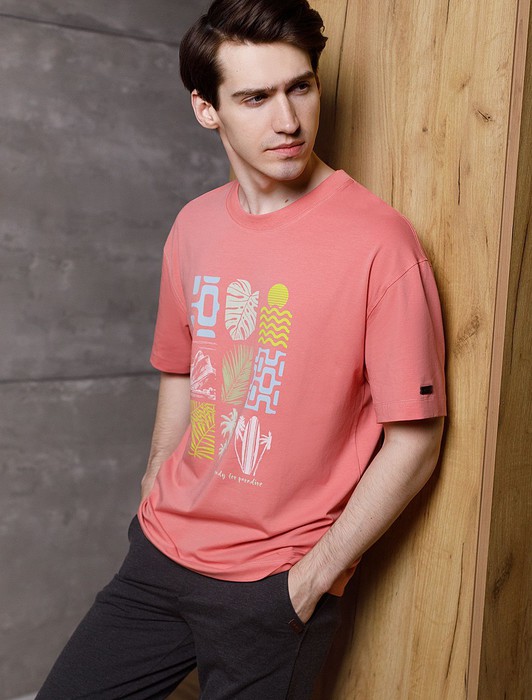 Состав: 92%Хлопок 8%ПУ Плотность: 170 Г/м2Перевод принта: Ready for paradise - готов к райскому отдыху. Футболка свободного кроя выполнена из премиального хлопка. Авторский принт нанесен красками с устойчивым покрытием. Благодаря эластану, носить изделие очень комфортно, и оно сохранит свой безупречный вид в течение долгого времени. На рукаве нашивка из эко-кожи с логотипом бренда.