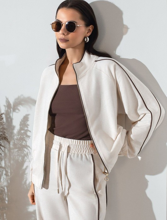 Свободный бомбер с лампасами на молнии из петельчатого футера двухнитки с эласта