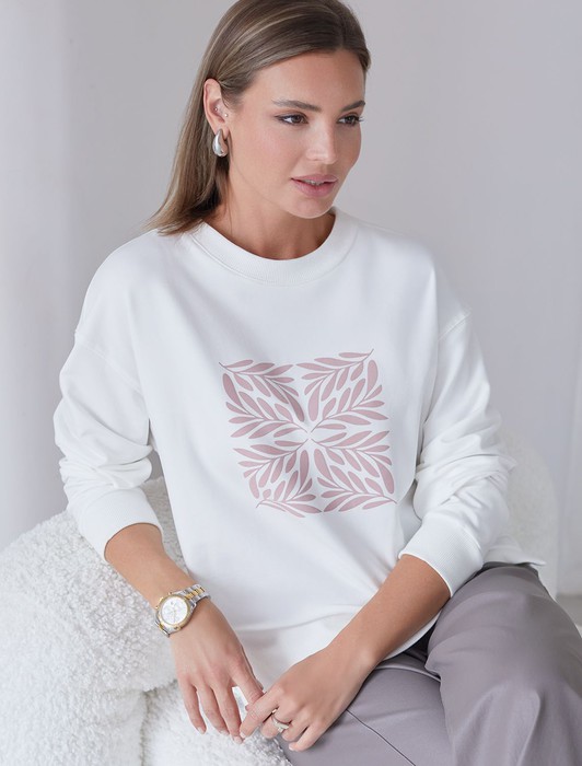 Совместные покупки Курган Женская одежда Костюмы, комплекты — Свободный свитшот с принтом и разрезами из эластичного футера двухнитки без наче