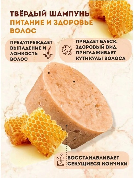 GreenEra Твердый шампунь натуральный, максимальное восстановление и питание, МЕДОВЫЙ, для слабых, ломких, тусклых волос