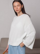 Укороченный джемпер с широкими рукавами рельефной вязки из хлопка с акрилом