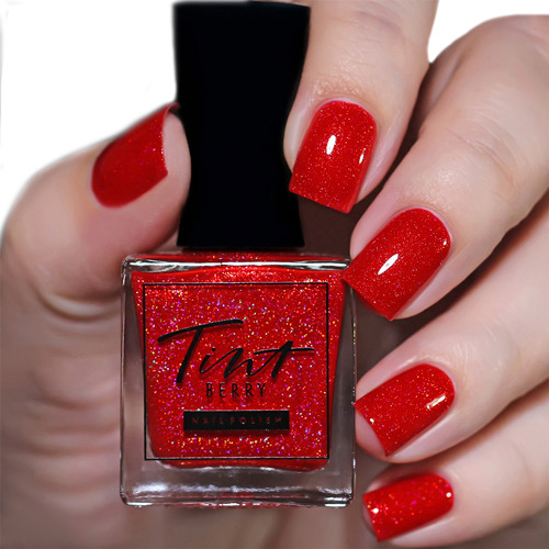 Адриана – воплощение смелого красного с рассеянной голографией.