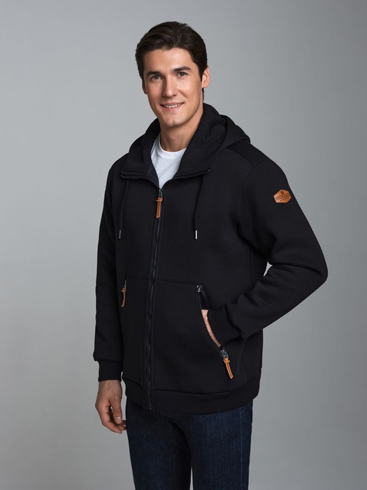 Толстовка изготовлена из плотного хлопкового трикотажного полотна с изнаночным начесом. Изделие на поясе, с капюшоном, застегивается на молнию. Удобные карманы «Кенгуру», застегиваются на молнии. Рукава втачные. Капюшон со стойкой, по лицевой части регулируется шнуром. Пояс и манжеты куртки изготовлены из плотной эластичной трикотажной резинки. На левом рукаве настрочен шеврон с фирменным логотипом.