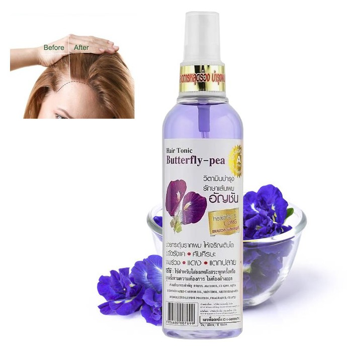 Клитория - тайское народное средство номер один для роста волос!Клитория тройчатая, называемая также мотыльковым горошком, тайской орхидеей или голубиными крыльями - это тот самый синий чай анчан, которые многие полюбили за необычный яркий цвет.В Таиланде растение культивируется в огромных масштабах, активно используется в самых разных сферах, начиная от окрашивания еды и тканей и заканчивая, конечно, уходом за волосами! Благодаря обилию микроэлементов, витаминов и антиоксидантов в составе мотыльковый горошек уже сотни лет успешно применяется ля лечения и профилактики облысения, в кажестве мощного стимулятора роста, укрепления стержня и усиления яркости оттенка! Тоник прекрасно справляется с поставленной перед ним задачей и эффективно воздействует на процесс восстановлении волос. Волосы заметно растут быстрее и гуще. Эффективное быстродействующее несмываемое натуральное средство для укрепления ослабленных волос, лечения выпадения волос и облысения.Лосьон с мотыльковым горошком наносится на кожу головы и воздействует на волосяные луковицы – укрепляет волосы и способствует росту новых волос, препятствует выпадению и появлению седых волос.Средство очень экономично расходуется, его хватает надолго. Не утяжеляет волосы.