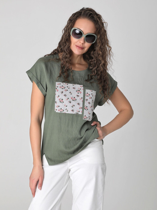 Стильная блуза из мягкой вискозы прямого силуэта с короткими цельнокроеными рукавами подходит для девушек и женщин разных возрастных групп. Оригинальная аппликация из принтованного льна и разноуровневая линия низа с декоративными разрезами акцентируют модный стиль блузки. Она хорошо сочетается со всеми брюками, жакетами и рубашками из нашей летней коллекции. Выбирайте понравившийся цвет, подбирайте обувь и аксессуары, и эта блуза выручит Вас летним днем в городе, на прогулке и на отдыхе. Собирайте свои образы, дополняйте их яркими аксессуарами и наслаждайтесь комфортом в летние дни!