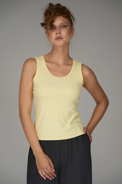 Современный и универсальный трикотажный топ станет идеальным дополнением вашего гардероба. Мягкая, приятная к телу ткань обеспечивает комфорт на весь день, а аккуратный крой подчёркивает силуэт, не сковывая движений. Минималистичный дизайн делает его легко комбинируемым — носите с офисными брюками, юбкой или любимыми джинсами. Топ доступен в нескольких спокойных оттенках, которые подчеркнут вашу естественную элегантность.