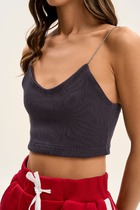 Топ выполнен из однотонного атласа. Топ на регулируемых бретелях, полочка двойная.