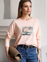 Лонгслив с принтом из премиального хлопка с эластаном