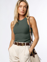 Vilatte Топ из трикотажа в широкий рубчик D43.191 т.оливковый