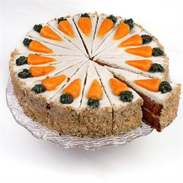 Коржи с добавлением моркови, ананаса, грецкого ореха, изюма пропитаны сливочным кремом.
