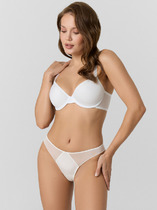 Трусики из гладкого эластичного материала с цветочным рисунком и отделкой из кружева. Центральная часть декорирована атласным бантиком.В комплект можно подобрать Бюстгальтер Push-up.
