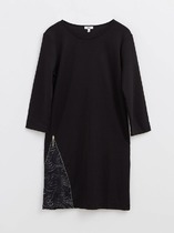 Туника с печатью, горловина и рукава обработаны бирюзовым кантом