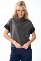 Туника полуприлегающего силуэта, средней длины, с V-образной горловиной, с боковыми карманами. Декоративные рукава украшены вставками из сетки и оборками. В верхней части полочки расположены вставки из сетки. В нижней части боковых швов обработаны разрезы. Горловина, декоративные вырезы на рукавах обработаны бейкой из основного полотна.