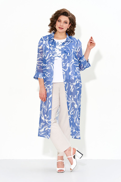 Туника женская прямого силуэта из шифона со втачными рукавами и разрезами по бокам, застежка-планка на петли и пуговицы.