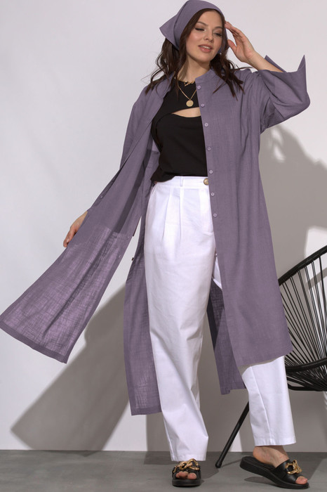 Этот вариант удлиненной рубашки идеален. Ее можно носить как рубашку-платье, как накидку, при это не застегивая на все пуговицы.