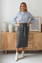 Шерстяная юбка миди, с ярким оригинальным принтом, выполненная из плотного, приятного к телу волокна с гладким плетением. Модель прямого фасона, высокой посадки, на талии комфортный эластичный пояс, сзади для удобства предусмотрена шлица.