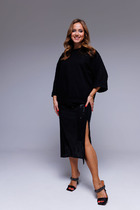 Юбка-карандаш из эластичной костюмной ткани, декорированная асимметричным подолом и разрезом спереди. Застежка-молния и шлица сзади. Без подкладки.