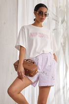 Блузка в полоску с цельнокроеным коротким рукавом из легкого хлопкового поплина