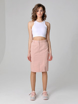 Юбка женская, изготовлена из тонкого плотного джинса в полоску. Юбка прилегающего силуэта, слегка зауженная к низу.  Передние половинки с двумя наклонными боковыми карманами, спинка со швом посередине, со шлицей. Юбка на поясе частично с резинкой.