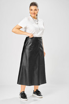 Эта юбка из плотной эко-кожи воплощает идеальный баланс между безупречной формой и комфортом, который дарит её долговечный материал.