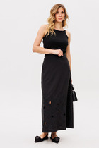 Юбка А-силуэта, длиной миди, на притачном широком поясе.