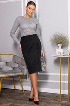 Юбка полуприлегающего силуэта выполнена из ткани плащевки на брендированной подкладе. Характеристики: полуприлегающий силуэт, пояс на резинке, по низу изделия пришито кружево. Длина по боковому шву 77 см.