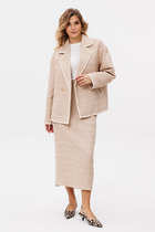 Юбка-мини полуприлегающего силуэта. Выполнена из прозрачной фактурной ткани нежно-розового цвета. С подкладкой. Пояс на резинке. Застежки в изделии нет. Длина 41 см
