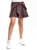 Стильная укороченная модель для девочек. Имеет по четыре встречные складки спереди и сзади. Юбочка дополнена кокеткой с хлястиками.Хлястики декорированы пуговицами.Застежка на потайную молнию выполнена в левом боковом шве.На подкладе