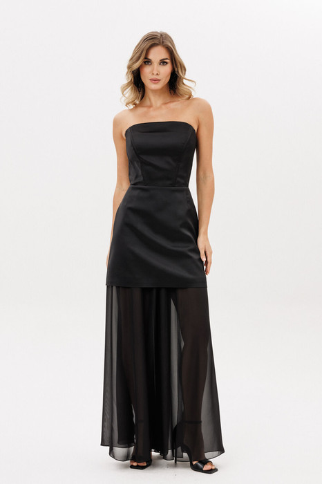 Юбка выполнена из шифона. Юбка А-образного силуэта, длиной в пол. Юбка на притачном поясе с эластичной тесьмой. Юбка состоит из 6 клиньев. Спереди слева разрез. Юбка без подкладки.