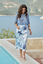 Юбка без пояса , застежкой на потайную молнию в среднем шве спинки. Переднее полотнище цельное. Заднее полотнище со средним швом,заканчивающимся шлицей, талиевыми вытачками.