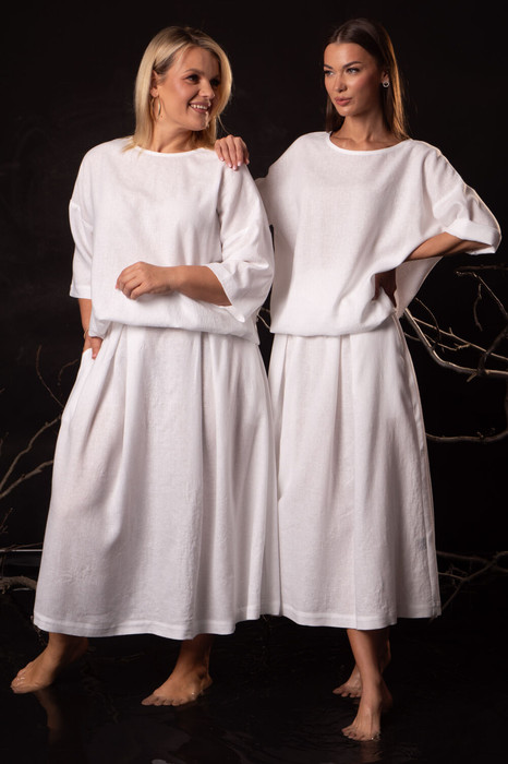 Элегантная женская юбка из белорусского льна с вискозой — идеальное сочетание природной эстетики, функциональности и комфорта. Изготовленная из премиального материала, она объединяет воздухопроницаемость льна и мягкость вискозы, создавая идеальный вариант для теплых дней. Встречные складки, боковые карманы и потайная молния по спинке делают эту модель уникальной, подчеркивая внимание к деталям и белорусское мастерство.