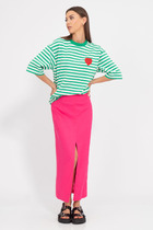 27.03 Vilatte Юбка с ассиметричной застежкой из эластичного денима D56.119 сини