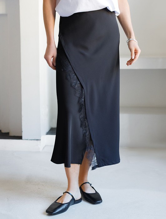 — Юбка миди на запАх из креп-шифона с кружевом