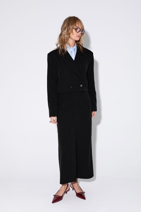 Прямая макси-юбки с высоким разрезом.