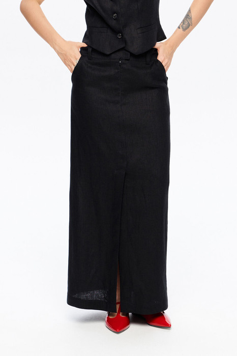 Льняная макси-юбки с высоким разрезом.