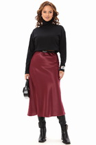 Юбка женская, выполнена из струящейся шифоновой ткани, на подкладке. По переду и спинке по четыре односторонние складки, расположенные ближе к боковым швам. Верх юбки обработан притачным поясом с четырьмя широкими шлёвками для ремня и резинкой по задней части. Застёжка на потайную тесьму молнию в боковом шве и петлю и пуговицу на поясе. В комплекте идёт ремень с металлической пряжкой. В зависимости от партии оттенок ремня и пряжка могут отличаться от фото.