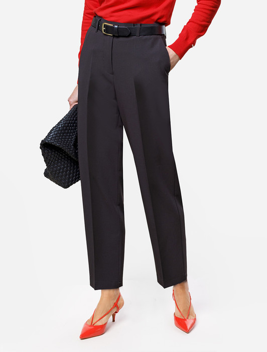 Состав: 60%ПЭ 36%Вис 4%ПУ; ПОДКЛАДКА- 100%ПЭ Плотность: 250 Г/м2 Параметры модели на первом фото: Рост 172, бюст 88, талия 64, бедра 88Укороченные брюки выполнены из фактурной черной поливискозы. Модель дополнена боковыми карманами и отлично подойдет как для строгого делового образа с блузкой и жакетом, так и для более расслабленного с футболкой и водолазкой. Эластичный материал изделия поддерживает оптимальный микроклимат, формоустойчивость и комфорт в течение всего дня.