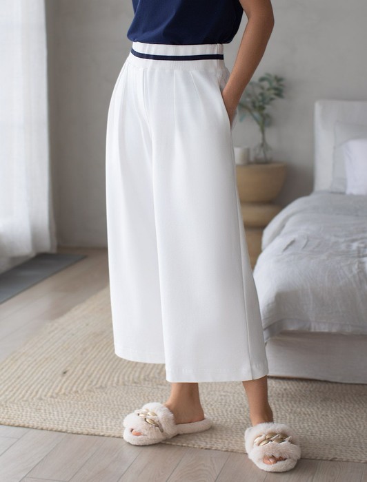Укороченные широкие брюки из эластичного футера двухнитки