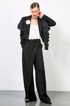 Утепленные женские брюки с высокой посадкой, для регулировки по линии талии имеется пояс, продетый через пластиковые рамки, который фиксируется на липучки. Застежка - молния, два глубоких прорезных кармана на молнии. Благодаря высокой спинке и возможности регулировки на поясе, талия визуально уменьшается, а Ваша поясница всегда в тепле