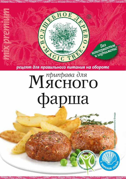 Специально подобранная смесь пряностей и трав для приготовления ароматных и вкусных котлет, фрикаделек и начинок из мясного фарша. CОСТАВ: Соль морская, кориандр, горчица, чеснок, лук, паприка, перец