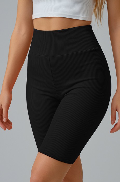 Однотонные бриджи базового черного цвета имеют широкую резинку, которая мягко, но надежно облегает талию и не дает им сползать. Все швы на спортивных шортах аккуратно обработаны.