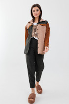 Брюки женские из смесового хлопка с добавлением эластана со съемным поясом и боковыми карманами.