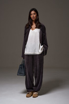 Свободные женские брюки со стрелками и боковыми карманами из плотного гладкого трикотажа интерлок. Застегиваются на молнию и кнопку. Низ обработан плоскими швами.