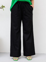 Свободные женские брюки со стрелкой и боковыми карманами из плотного гладкого трикотажа интерлок. Застежка на кнопку. Низ обработан плоскими швами.
